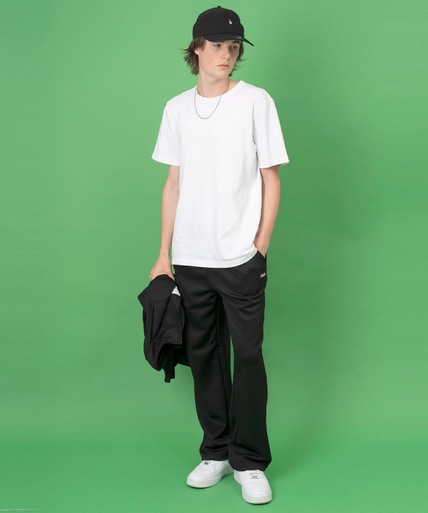 ボトムはスウェットパンツやジャージパンツとスニーカー合わせで、今年らしいスポーツ・ストリートスタイルが強調できます。